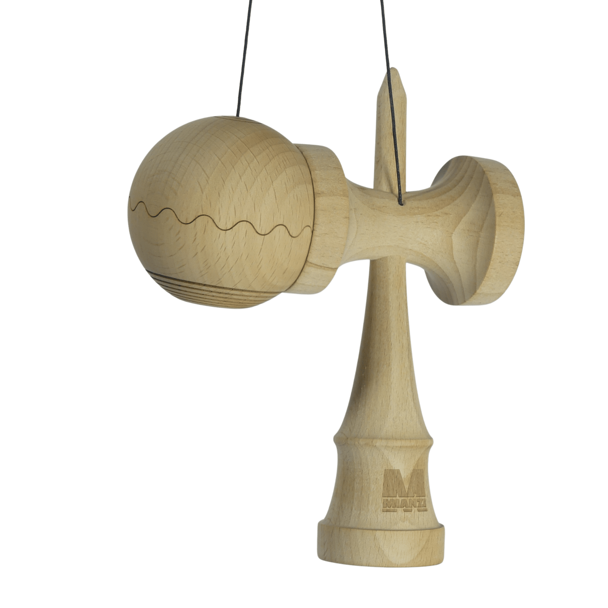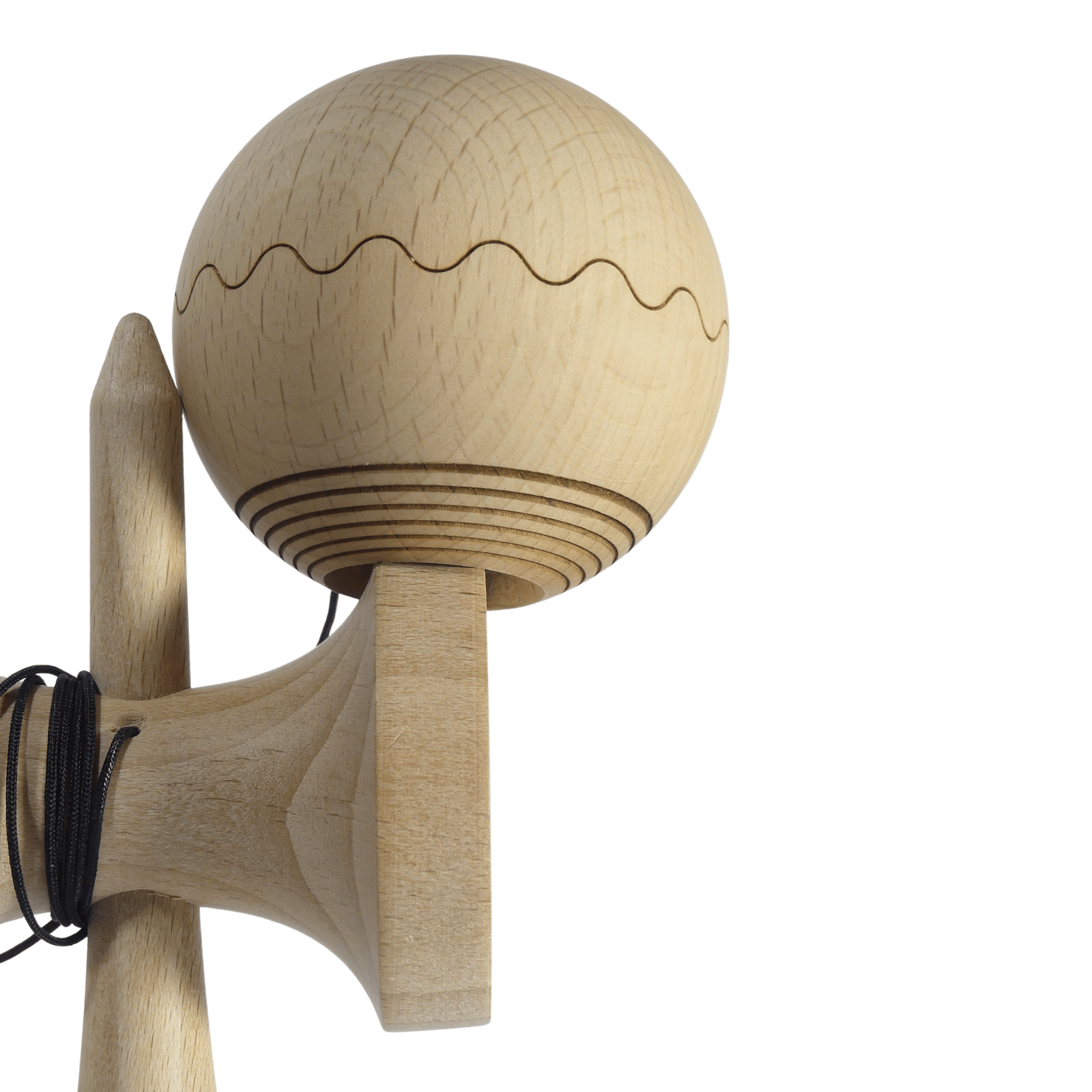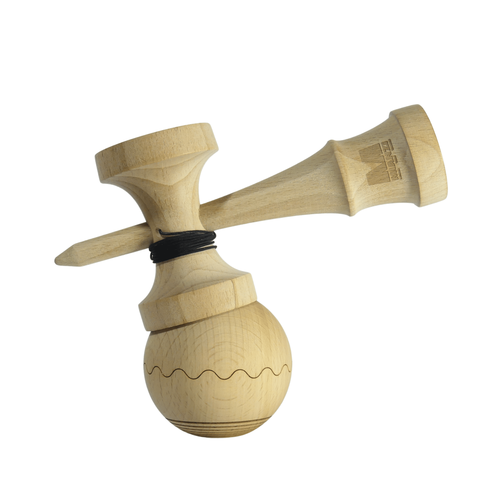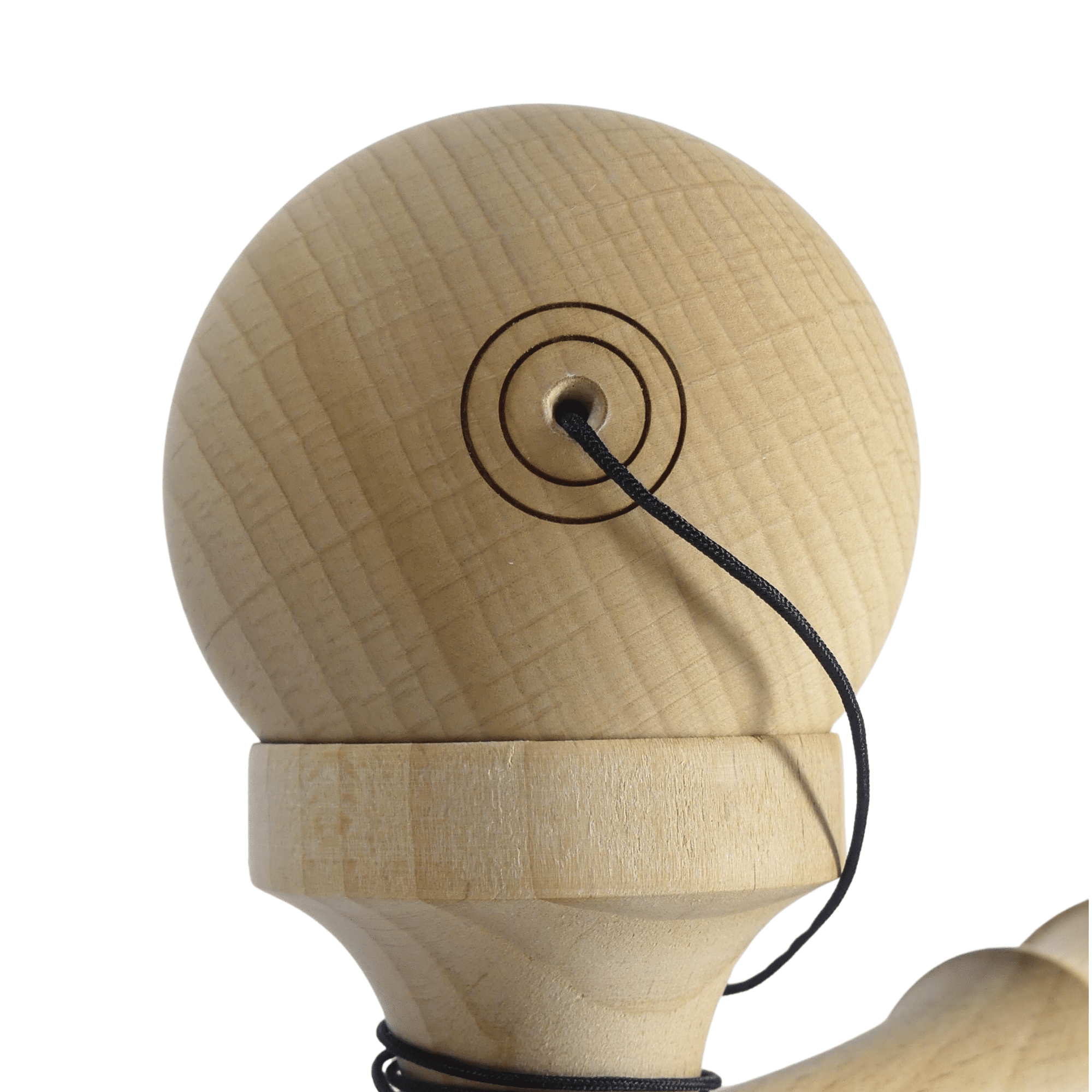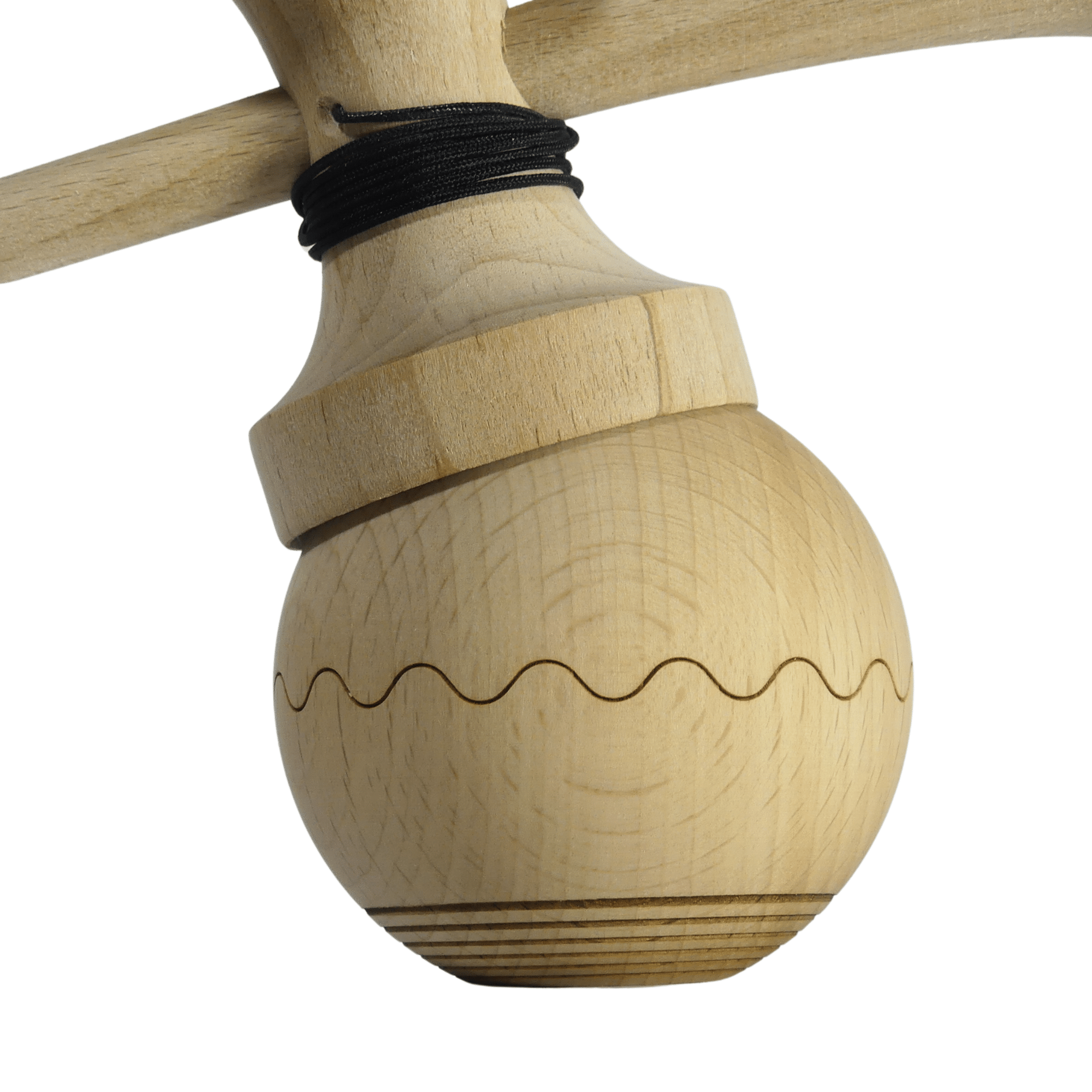 Este kendama incorpora un ken Second Shape de madera de haya, conocido por su equilibrio y ergonomía, ofreciendo una sensación sólida y estable en cada truco.